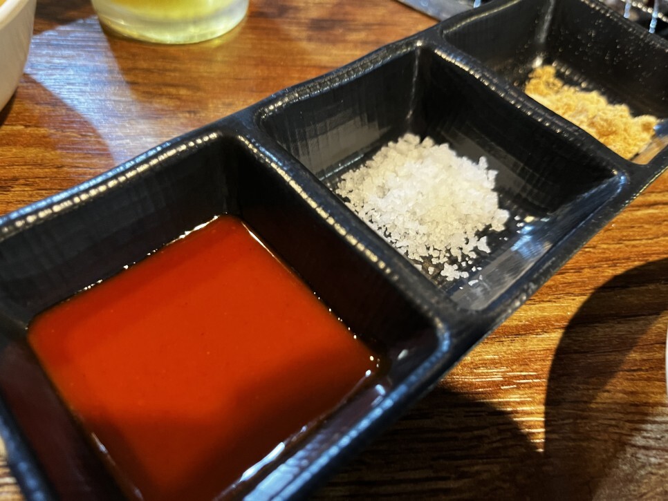 연봉리돼지뽈집 특제 소스와 소금 그리고 콩가루