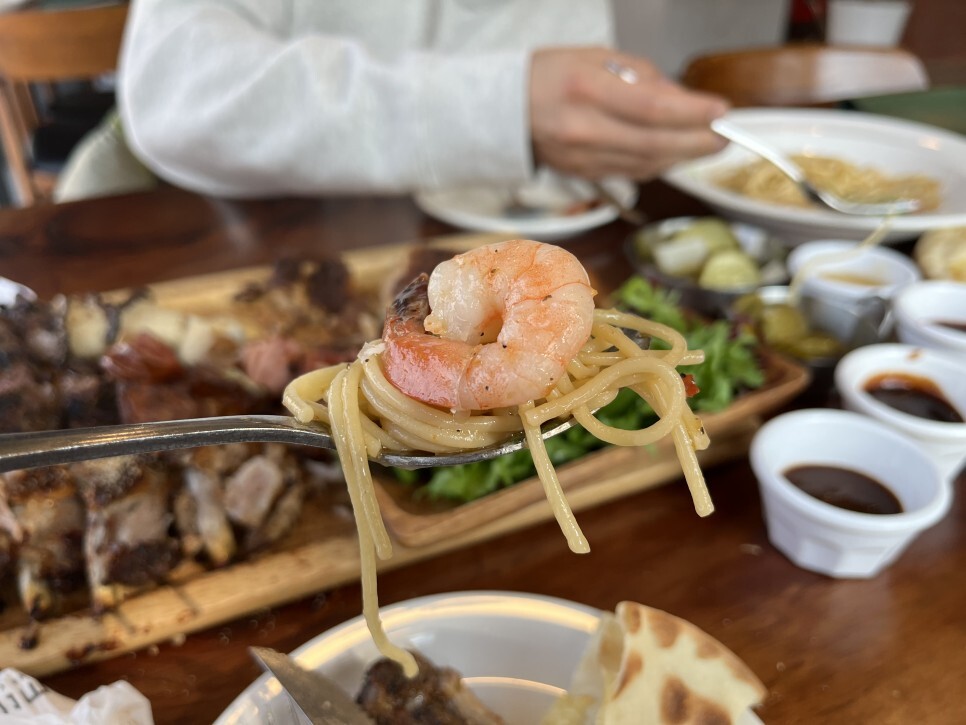 새우 마늘 면요리를 맛 보았습니다